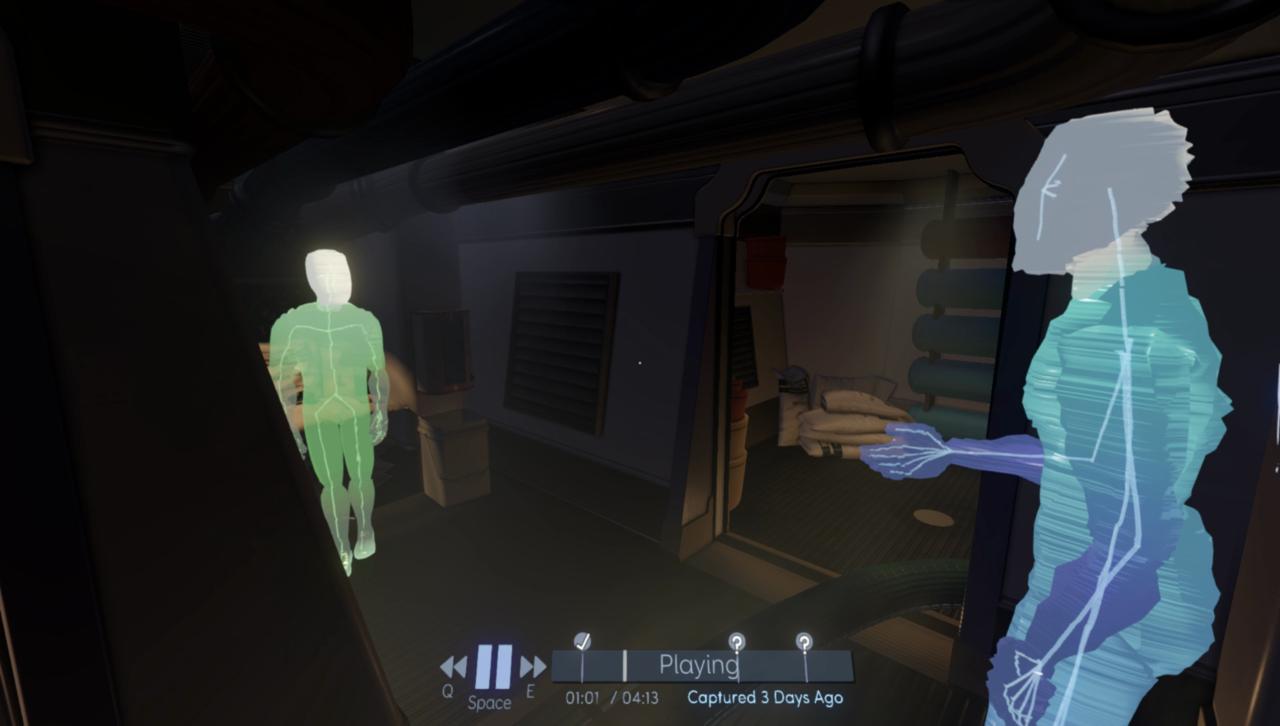 Вы попадаете на такое заброшенное космическое судно. Пару лет назад в нем произошел сбой, который привел к аварии. Вам предстоит ознакомиться с историей этого объекта, узнать, что же привело к катастрофе, и куда пропал экипаж. Искусственный разум, который находиться на корабле, может просматривать действия и разговоры персонажей, которые находились на борту станции до аварии. Вы можете мотать записи вперед и назад, ставить на паузу, чтобы тщательно изучить, что же происходило на корабле. Перед вами голографические изображения людей, вы можете слышать их диалоги, просматривать действия. Вам нужно собрать поврежденные файлы и вернуть их Venturis Technologies.